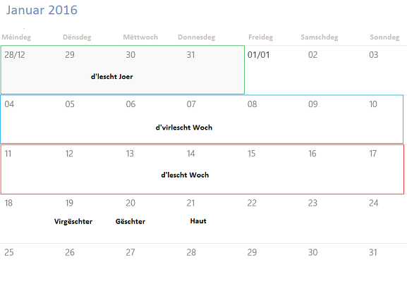 12:00 Hie mécht Mëttespaus a geet an d'Kantin iesse bis 13:00.